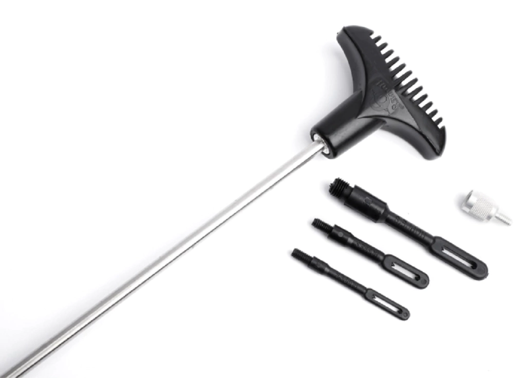 Las baquetas Hoppes están fabricadas con acero inoxidable de alta calidad. La varilla de limpieza tiene un mango giratorio con rodamiento de bolas para seguir fácilmente el estriado del orificio mientras se limpia.