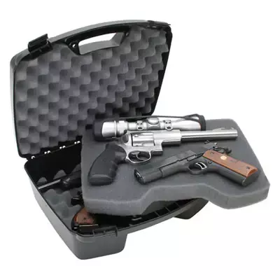 Diseñado para albergar cuatro pistolas con cañones de hasta 20 cm de largo. Las pistolas se sujetan mediante un juego de acolchado de espuma de tres piezas. Asa ergonómica más grande para facilitar su transporte. Pestillos de cierre resistentes. Pestaña para candado para mayor seguridad. También dispone de espacio para un seguro de gatillo. Este es un excelente estuche para pistola.