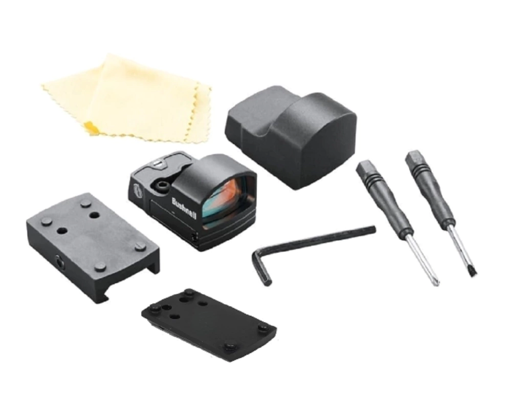 El nuevo visor punto rojo de BUSHNELL RXS-100 está fabricado en una robusta carcasa de aluminio de grado aeronáutico 6061-T6 que garantiza que el vidrio y los componentes internos electrónicos estén protegidos contra el retroceso del arma de fuego (incluidas pistolas de gran calibre) y el uso extremo en el campo.