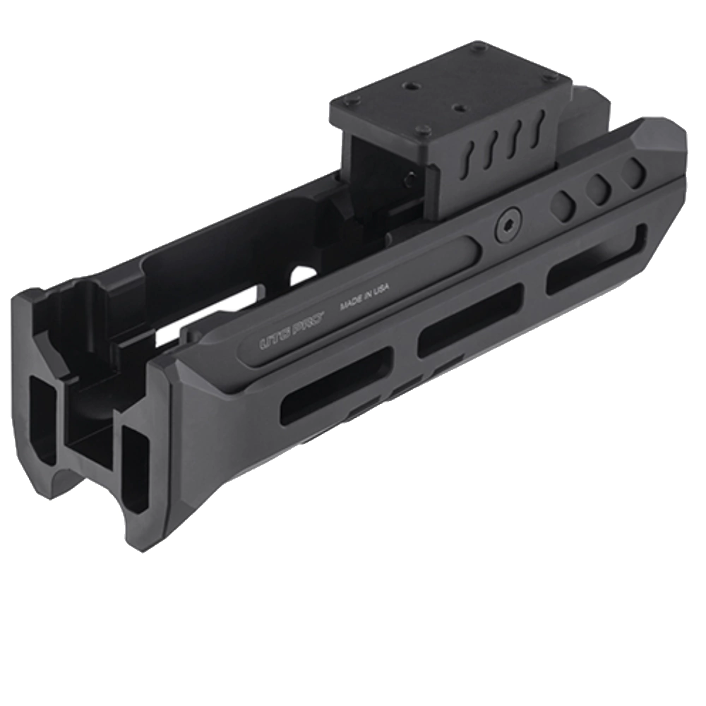 Se incluye montura óptica de huella Co-witness Docter® inferior opcional de 1/3. Mecanizado con precisión a partir de aluminio 6061-T6 y acabado en anodizado negro mate. El guardamanos mide 6.49" de largo, 1.80" de ancho y 1.73" de alto y pesa 9.3 onzas.